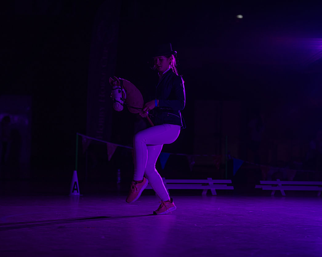 W tym KOŃkursie bierze udział jeden zawodnik (do 18 lat), który pokonuje parkur na Hobby Horsie oraz Hoppimalsie.